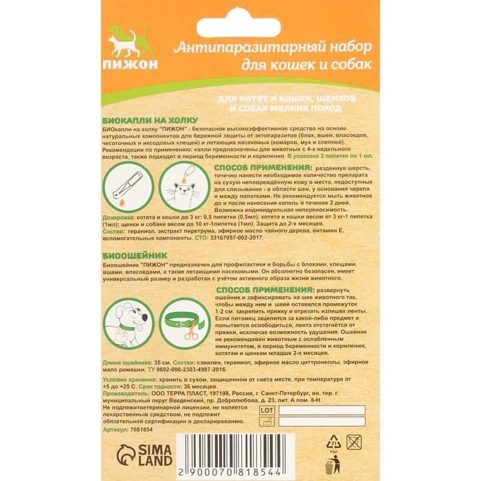 Антипаразитарный набор "Пижон" для кошек и собак (ошейник 35 см + биокапли 2х1 мл)