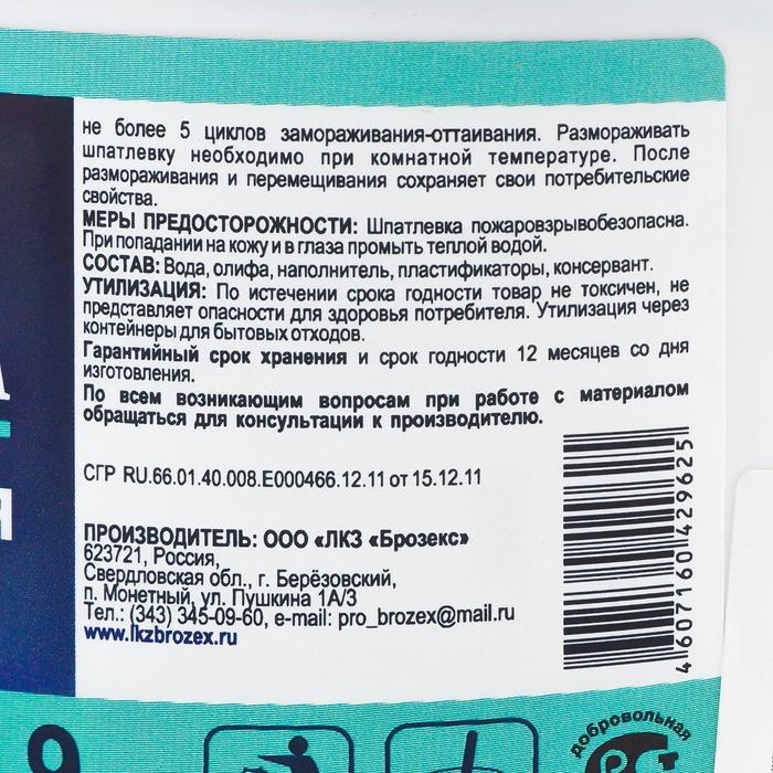 Шпатлёвка масляно-клеевая "БРОЗЭКС" предназначена для выравнивания и устранения дефектов деревянных (кроме полов), кирпичных, бетонных, оштукатуренных поверхностей в помещениях с нормальной влажностью для последующей побелки, окраски или оклеивания обоями