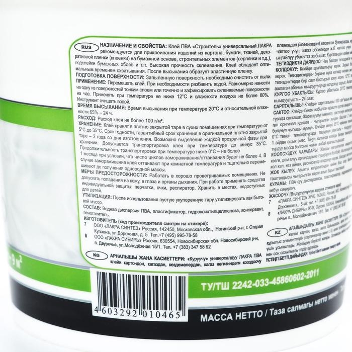 Клей ПВА "Лакра" универсальный "Строитель" 0,9 кг