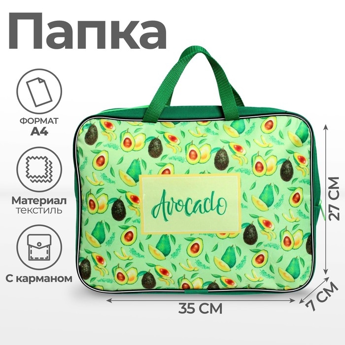 Папка с ручками текстильная А4, 350 х 270 х 70 мм, Calligrata "Авокадо"