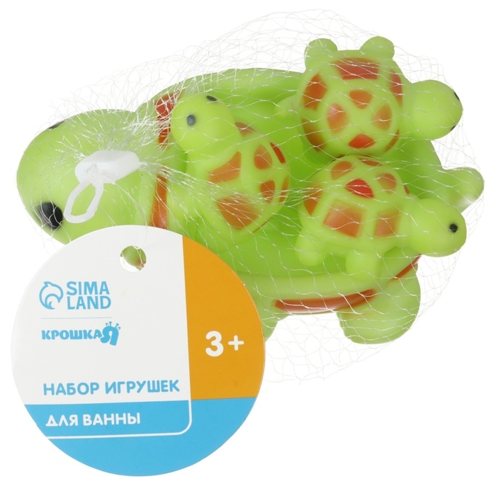 Набор резиновых игрушек для ванны «Мыльница: Черепаха», 14,5 см, с пищалкой, 4 шт, цвет МИКС, Крошка Я