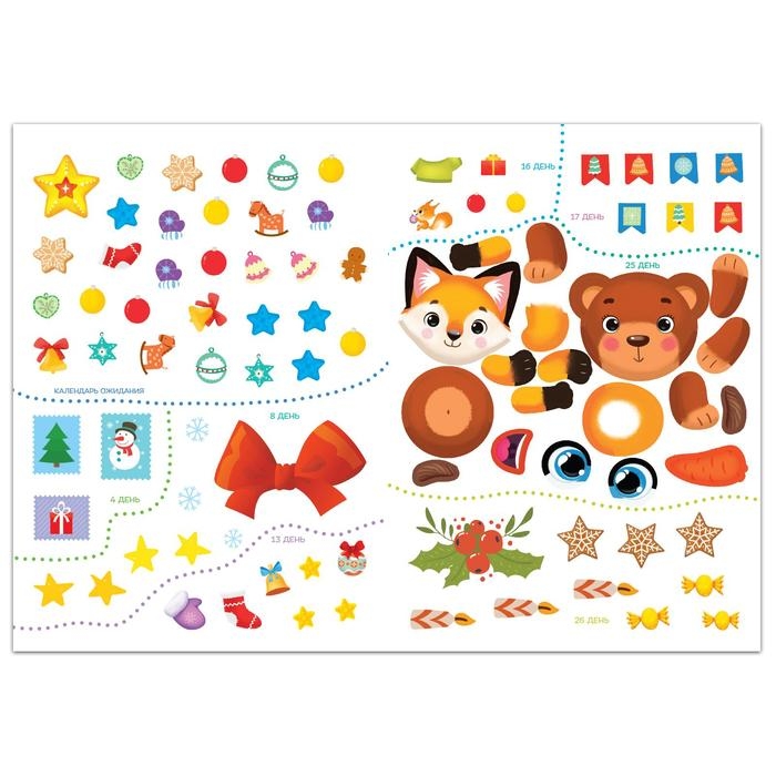 С книжкой с наклейками «Творческий адвент- календарь» ребёнок успеет подготовиться к главному зимнему празднику и зарядиться отличным настроением.