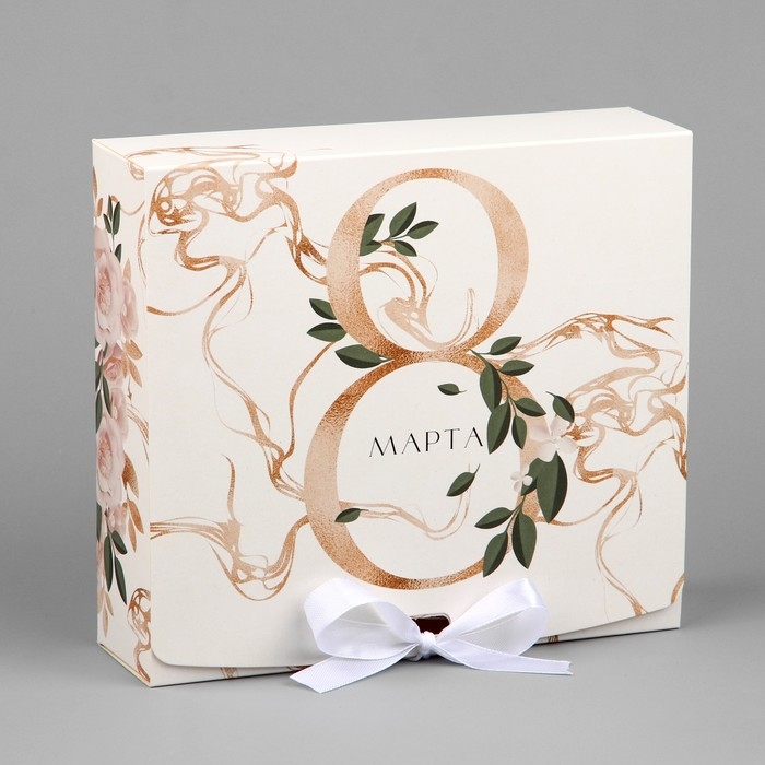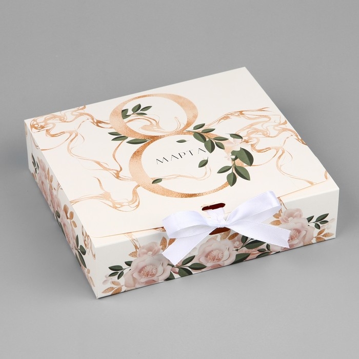 Коробка подарочная складная, упаковка, «8 марта, золото», 20 х 18 х 5 см