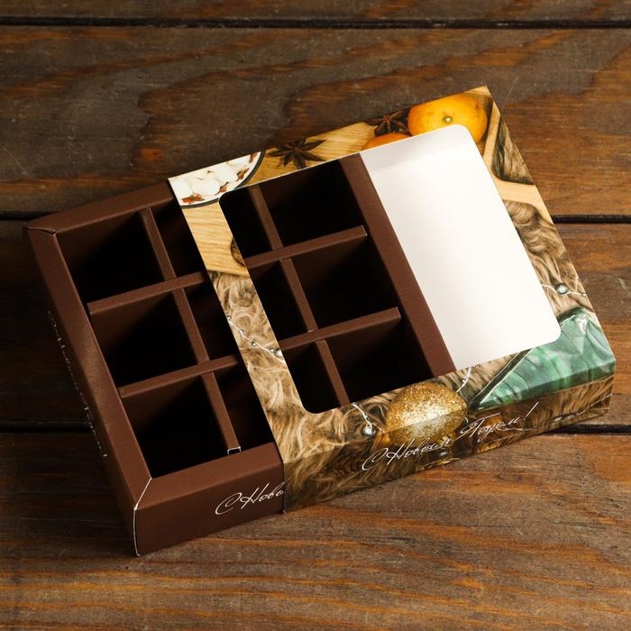 Коробка для 8 конфет + шоколад, с окном "Презент", 17,7 х 17,8 х 3,8 см. Кондитерская упаковка