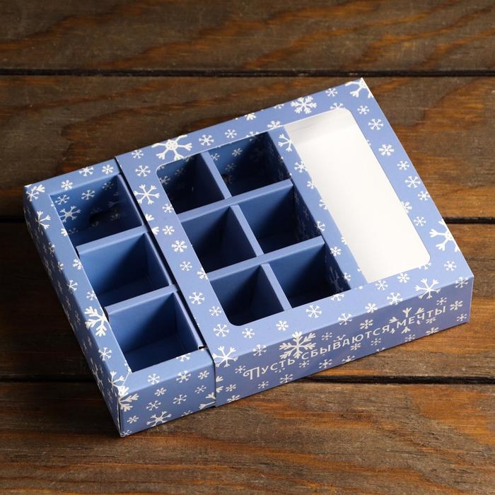 Коробка для 8 конфет + шоколад, с окном "Презент", 17,7 х 17,8 х 3,8 см. Кондитерская упаковка