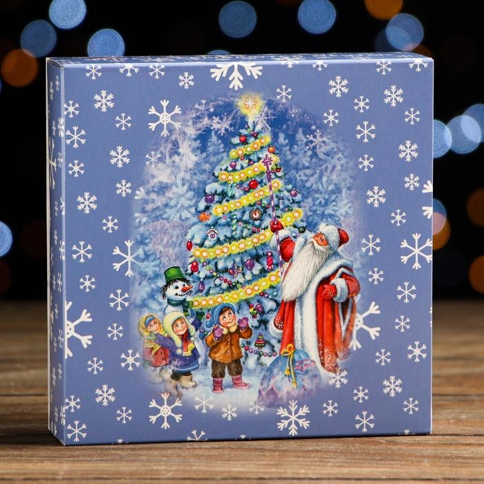 Новый год. Коробка для конфет с обечайкой 9 шт "Ёлочка, гори!", 13,7 х 13,7 х 3,5 см