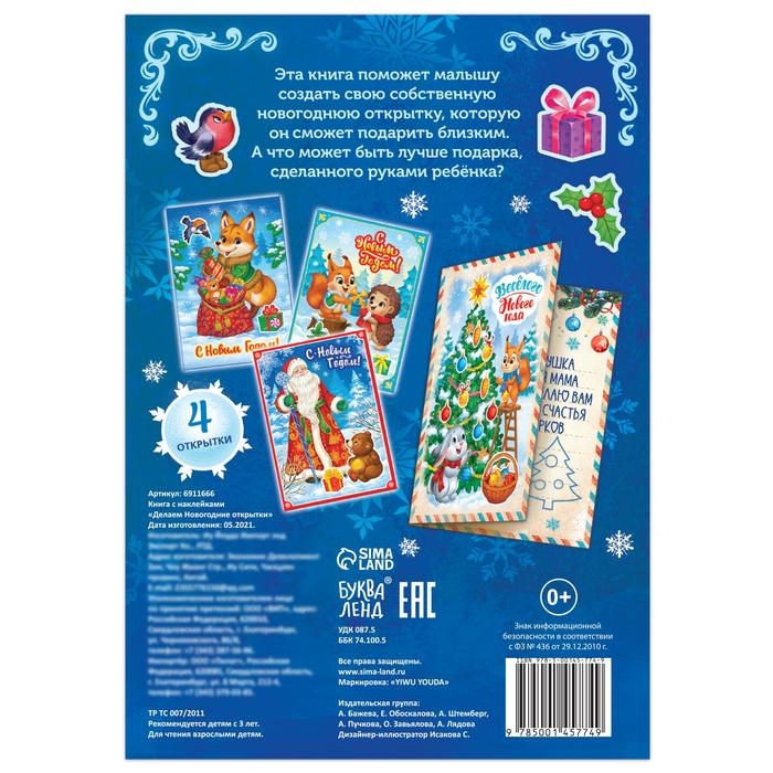 Книга с наклейками «Делаем новогодние открытки», 20 стр.