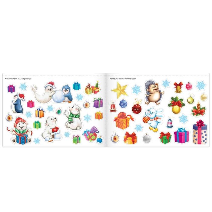 Новогодний альбом наклеек подарит малышу праздничное настроение. Книга предназначена для самых маленьких и подойдёт для занятий с детьми от 3 лет.