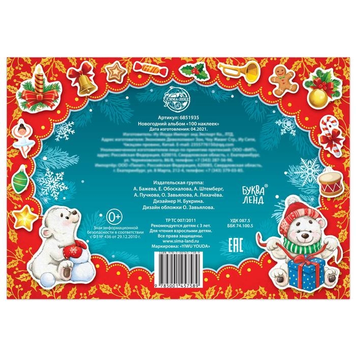 Новогодний альбом 100 наклеек, 12 стр.