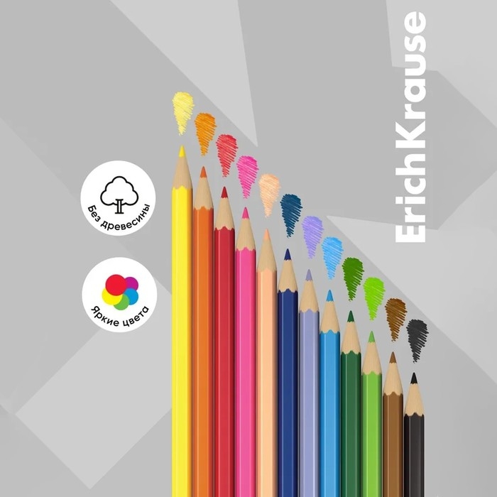Идеальная центровка грифеля и пластичность материала карандаша гарантирует легкую заточку с экономным расходом карандаша. Грифель диаметром 2.6 мм не ломается и не крошится даже при сильном нажиме. Цвета в наборе: жёлтый, оранжевый, красный, розовый, лососевый, лиловый, синий, голубой, салатовый, зелёный, коричневый, чёрный.