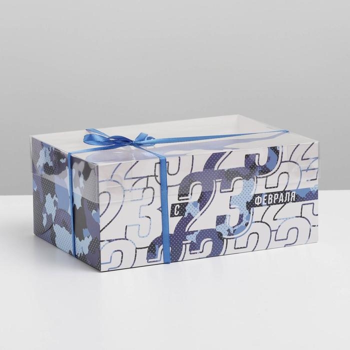 Коробка для капкейков, кондитерская упаковка с PVC крышкой, 6 ячеек «23 февраля», 23 х 16 х 10 см