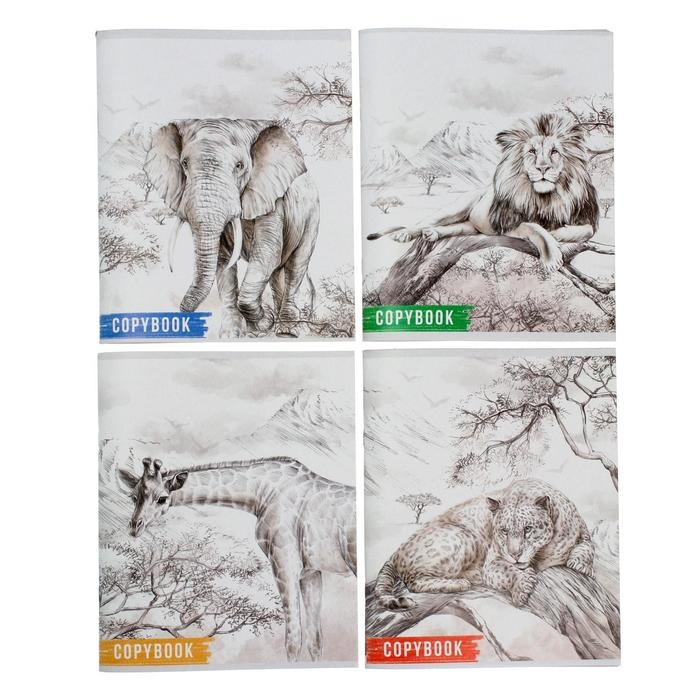 Тетрадь 96 листов в клетку Calligrata "Африка", обложка картон хром-эрзац, блок №2, белизна 75% (серые листы), МИКС