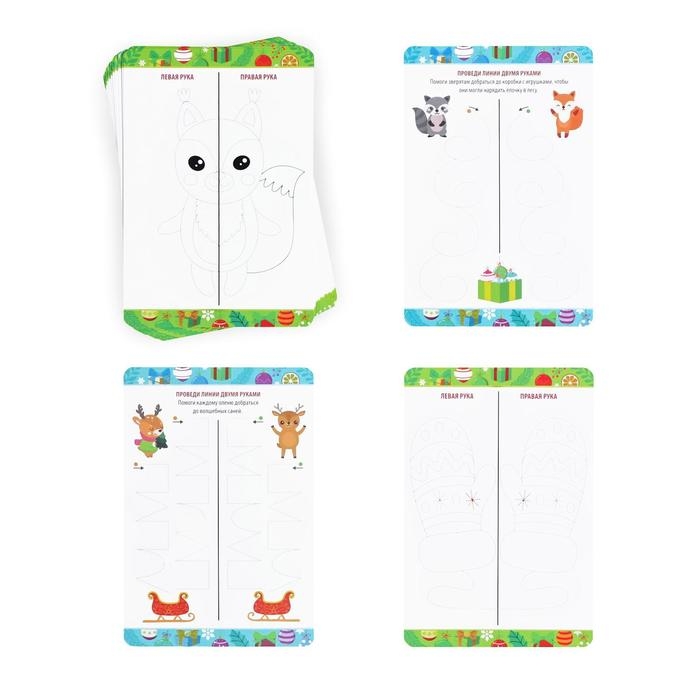 Одновременное выполнение заданий двумя руками поможет развить творческое и техническое мышление. А ещё натренировать запястье и подготовить руку к письму. Специальный новогодний выпуск поможет ребёнку провести время не только с пользой, но и с погружением в волшебную праздничную атмосферу!