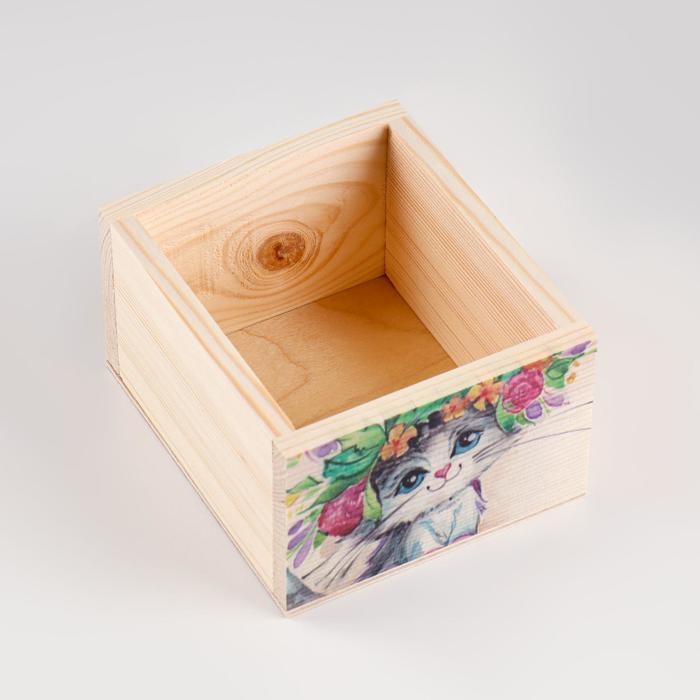 Кашпо деревянное "Котик" 14,5×12,5×8,5 см