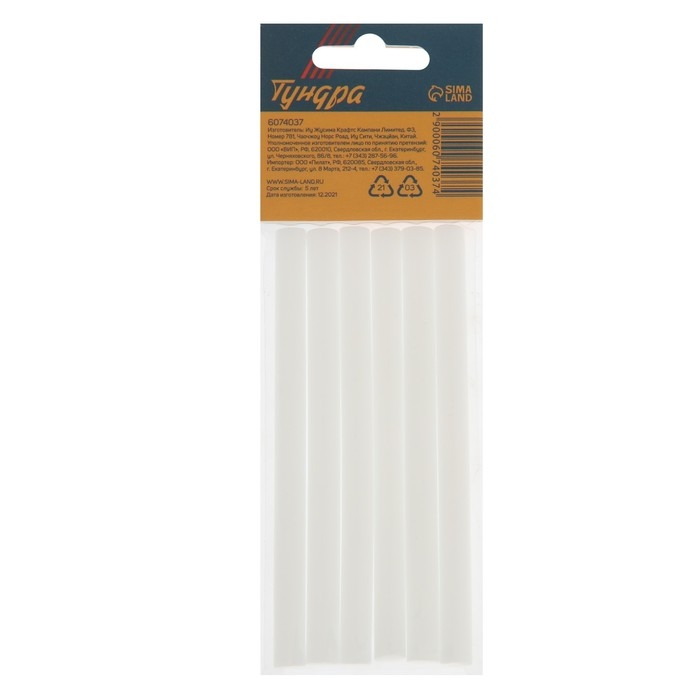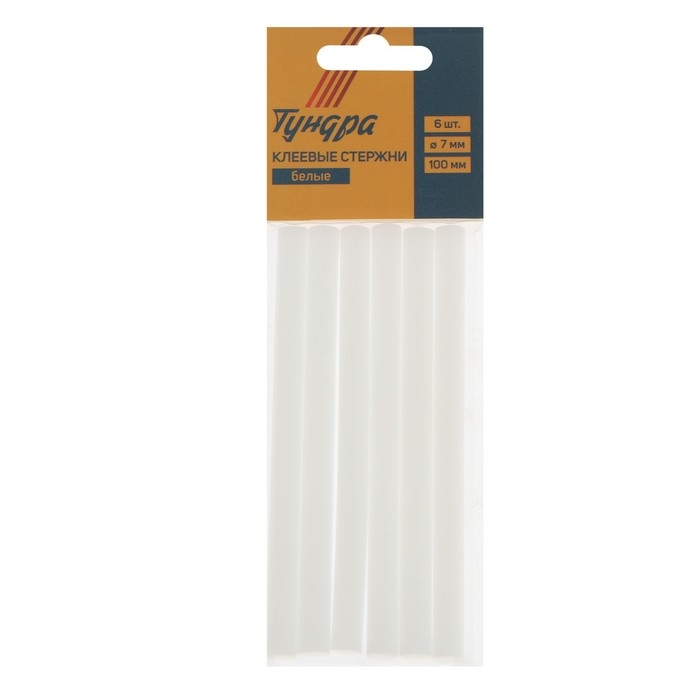 Клеевые стержни ТУНДРА, 7 х 100 мм, белые, 6 шт.