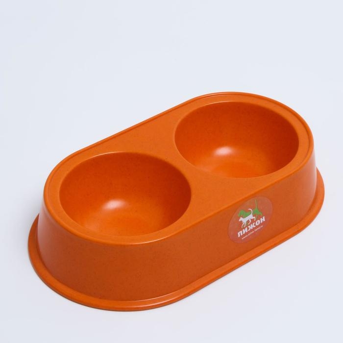 Миска бамбуковая двойная, 23,5 х 13 х 5 см, оранжевая