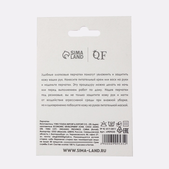 Эти хлопковые перчатки – прекрасный выбор для ухода за кожей и защиты рук от внешних факторов. Ваша кожа заслуживает такого ухода, и эти перчатки помогут вам сделать процедуры ещё более эффективными и приятными.