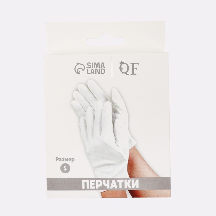 Перчатки хлопковые, размер S, пара, в картонной коробке, цвет белый