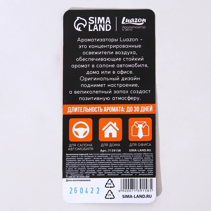 Ароматизатор подвесной Men's, аромат: мультифрукт, 5 мл