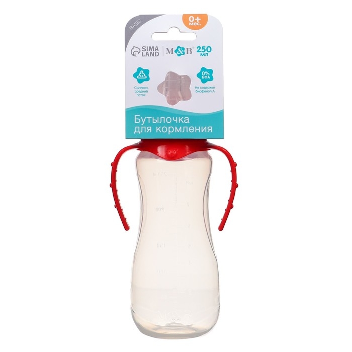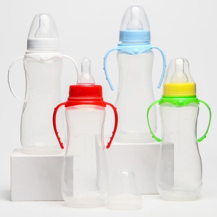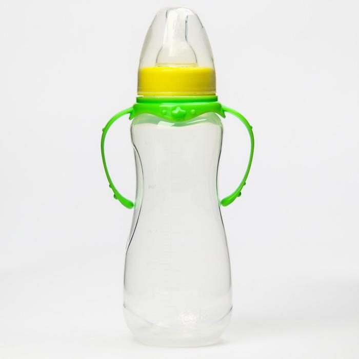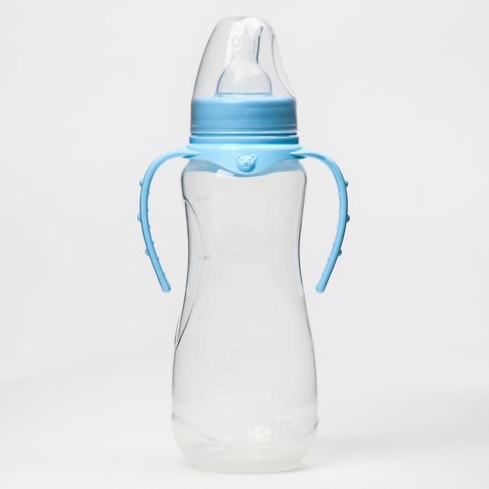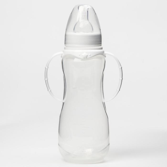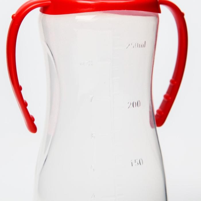 Бутылочка для кормления, классическое горло, 250 мл., от 0 мес., приталенная, с ручками, цвет МИКС