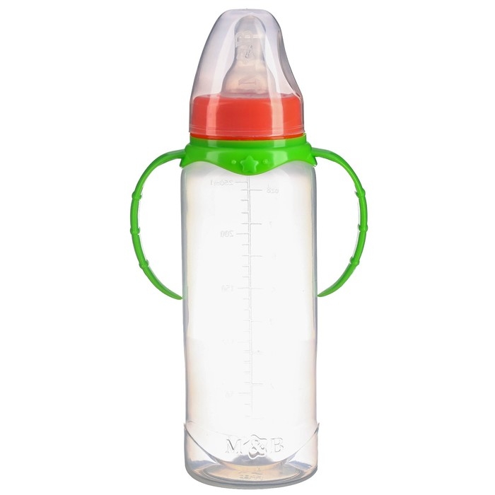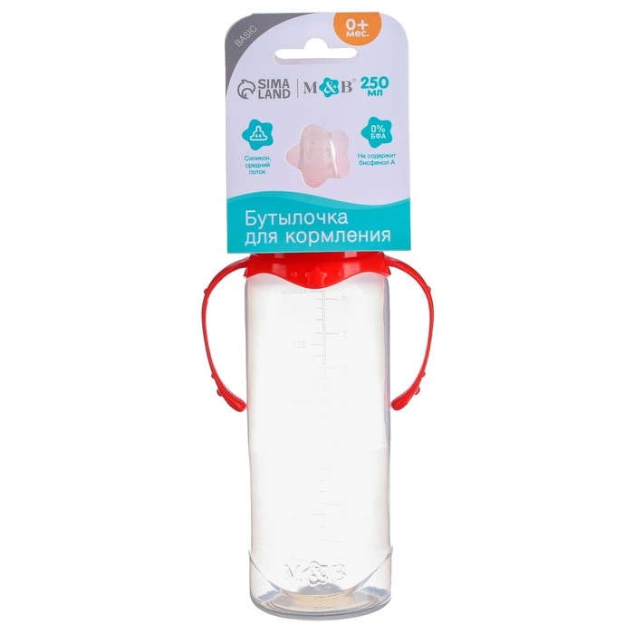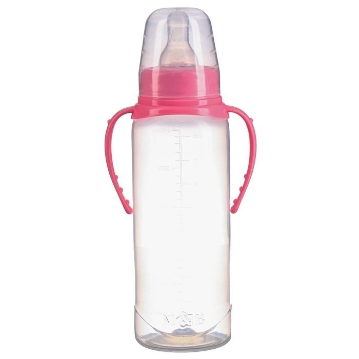 Бутылочка для кормления, классическое горло, 250 мл., от 3 мес., цилиндр, с ручками, цвет МИКС