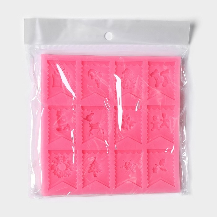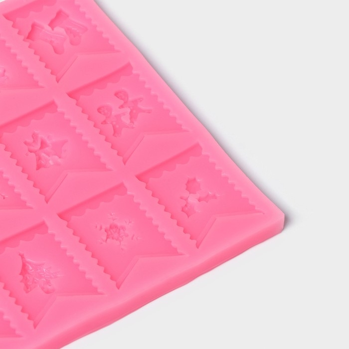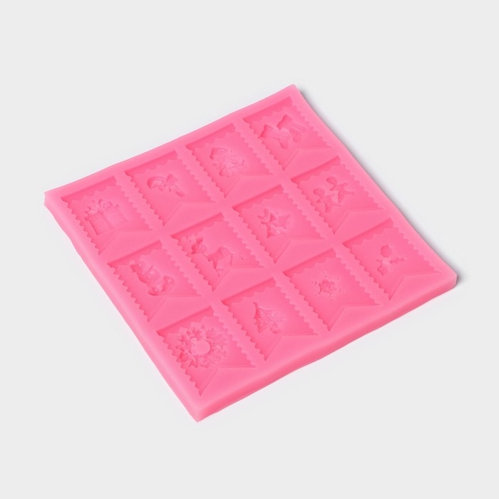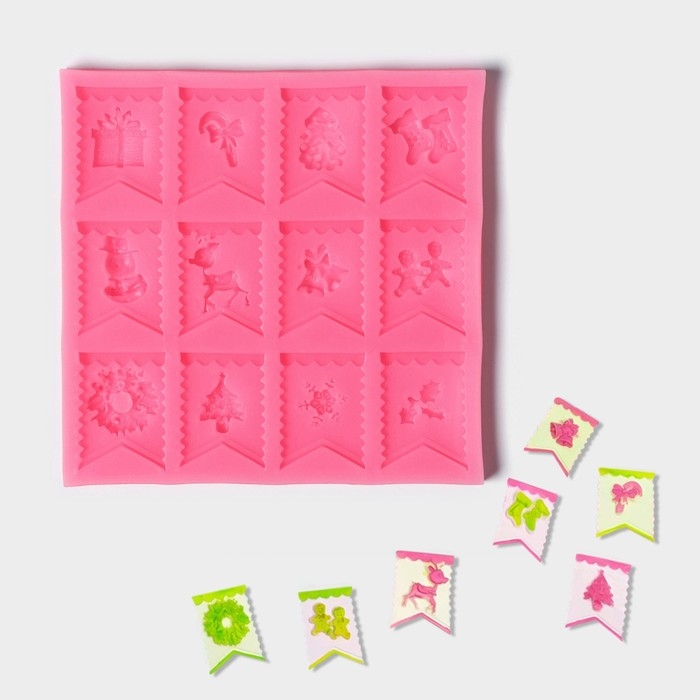 Молд новогодний «Новогодние флажки», силикон, 13,5×13,5×0,8 см, цвет розовый