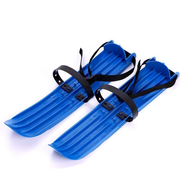 Мини лыжи детские с ремешками, длина 44,5 см, ширина 8,5 см. В комплекте 2 регулируемых ремешка (пластиковый и текстильный) для фиксации ступни и пятки.