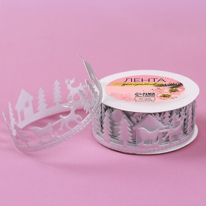 Новый год! Лента декоративная фигурная «Новогодний лес», 30 мм, 9 ± 0,5 м, цвет серебряный