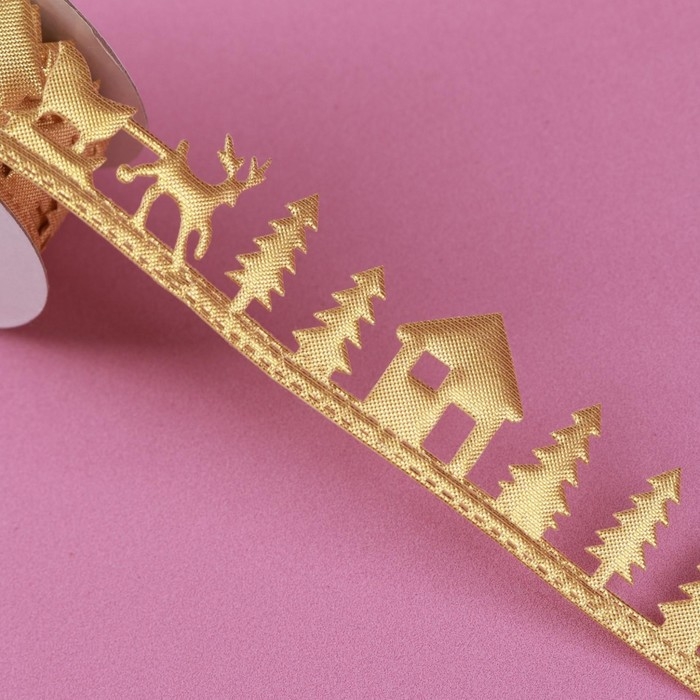 Новый год! Лента декоративная фигурная «Новогодний лес», 30 мм, 9 ± 0,5 м, цвет золотой