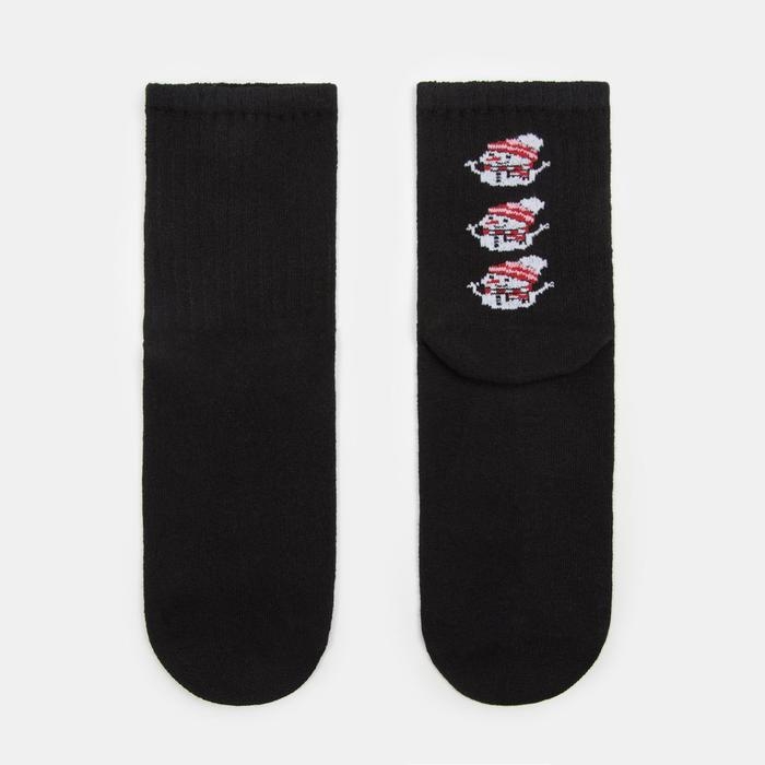 Носки женские MINAKU «Снеговики», цвет чёрный, размер 38-39 (25 см)