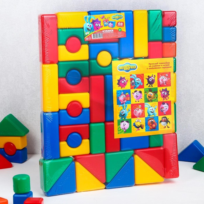 Набор цветных кубиков, "Смешарики", 60 элементов, кубик 4 х 4 см