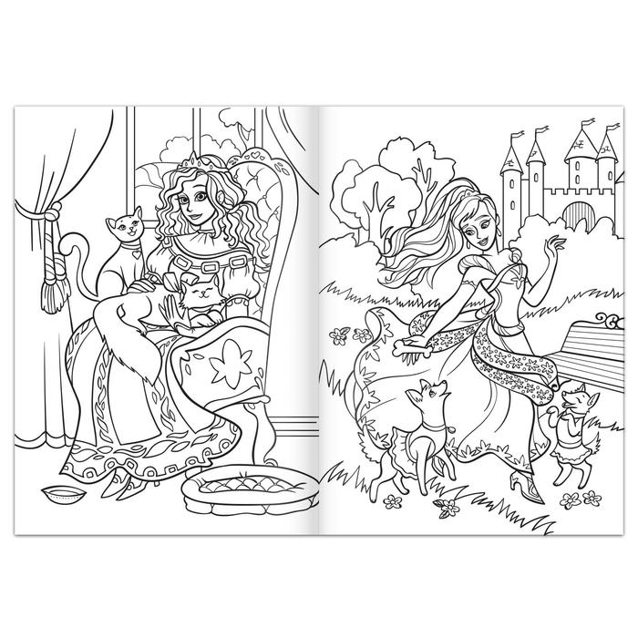 Девочка с удовольствием будет раскрашивать, а изображения прекрасных принцесс и милых животных сделают творческие занятия ещё более интересными.
