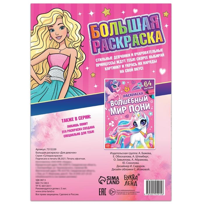 Большая раскраска «Для девочек», 68 стр., формат А4