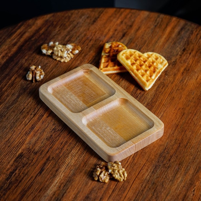 Менажница деревянная прямоугольная Доляна, 18×10 см, 2 секции, берёза, пропитана маслом