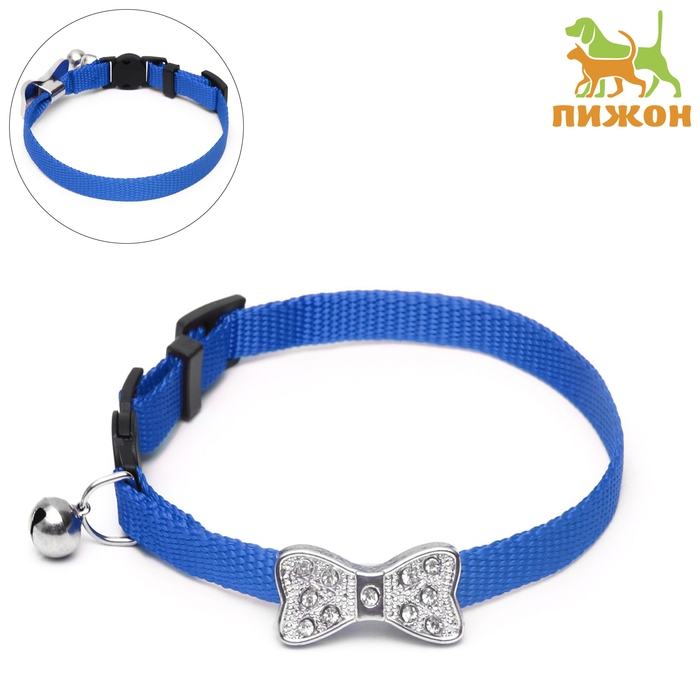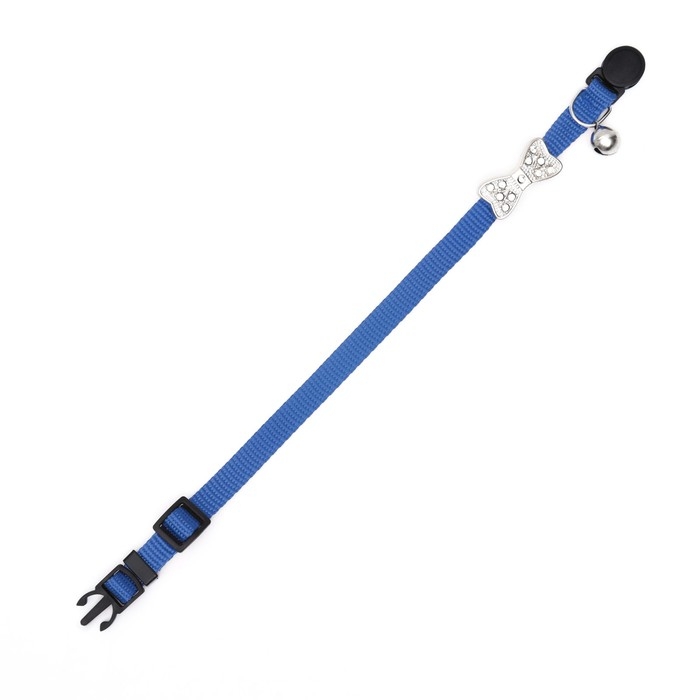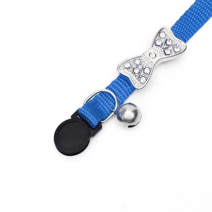 Ошейник кошачий "Бантик" со стразами, 30 х 1 см, синий