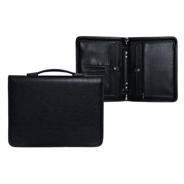 Папка с ручками А4, 360 х 270 х 80 мм, текстильная, внутренний карман, чёрный 1Ш48