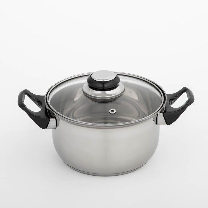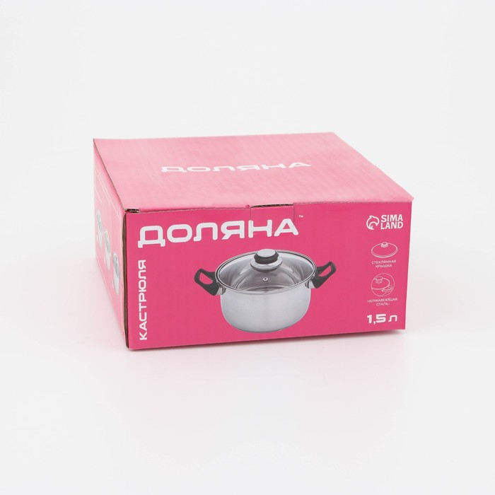 Кастрюля из нержавеющей стали Доляна «Чёрная ночь», 1,5 л, с крышкой