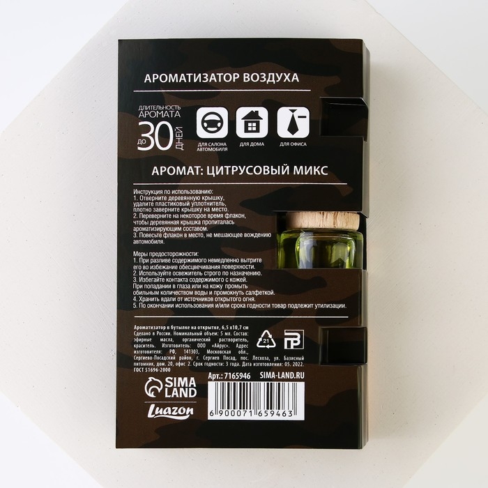 Ароматизатор в автомобиль на 23 Февраля «Блестящих побед», аромат: цитрус