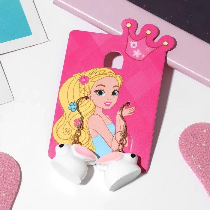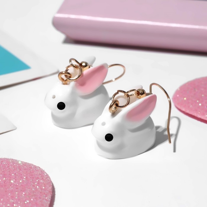 Серьги детские «Выбражулька» зайчики, цвет бело-розовый в золоте