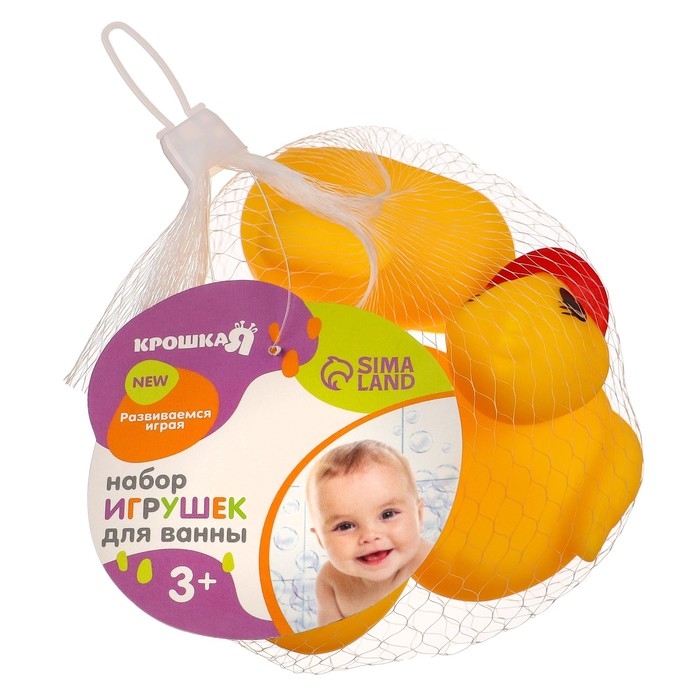 Набор резиновых игрушек для ванны «Уточки», 6,5 см, с пищалкой, 3 шт., Крошка Я