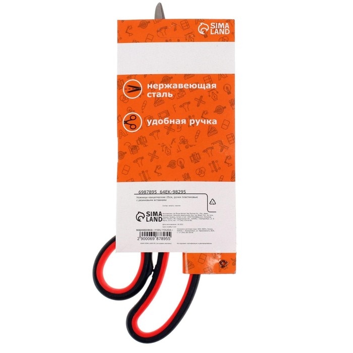 Ножницы канцелярские 25 см, ручки пластиковые с резиновыми вставками