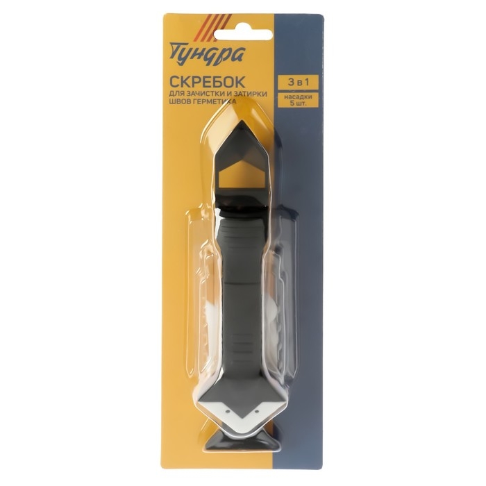 Скребок-шпатель для удаления и выравнивания герметика ТУНДРА, 3 в 1, 5 насадок