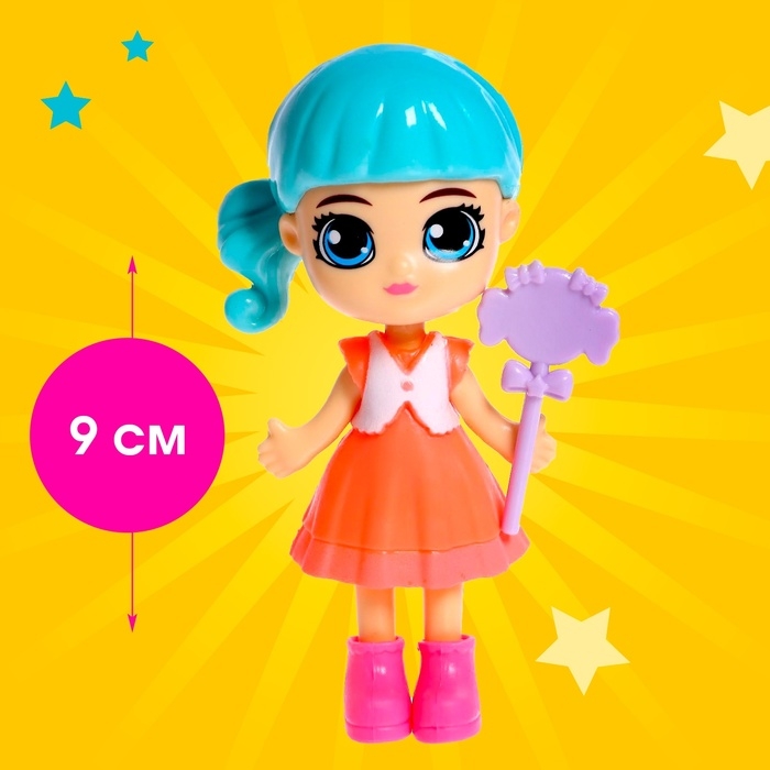 Высота куклы: 9 см. Ручки и ножки не двигаются. Игрушки выполнены из пластика — безопасного материала для малыша.