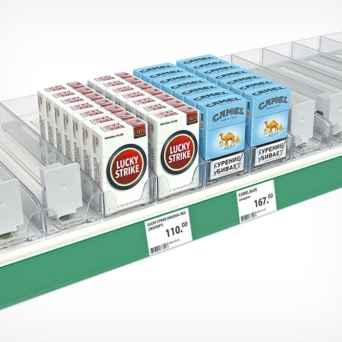 Сигаретные лотки очень просты в применении - нет необходимости выставлять нужную ширину между стенками и крепить толкатель. Это компактное, экономичное решение All-in-one. Достаточно просто защёлкнуть лоток на крепёжных профилях, и им можно пользоваться! Подойдёт для любой продукции, сходной по габаритам с пачкой сигарет. Крепёжный профиль приобретается отдельно.