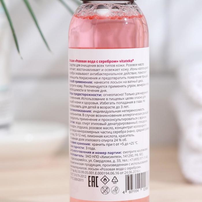 Розовая вода лосьон Витатека с серебром, 100 мл