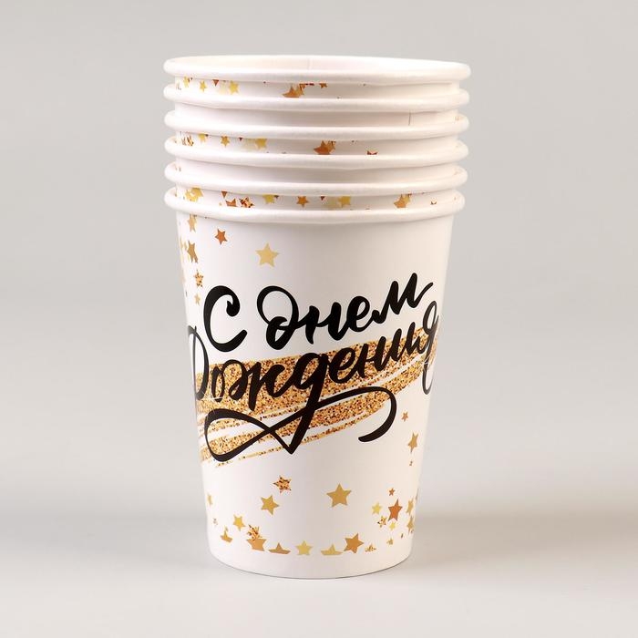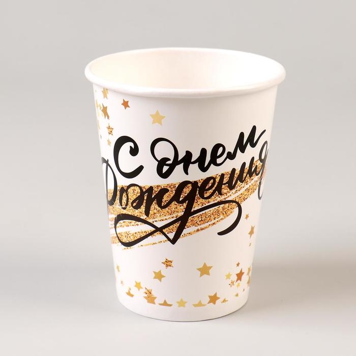 Стакан бумажный «С днём рождения. Золотой звездопад», набор 6 шт., 200 мл
