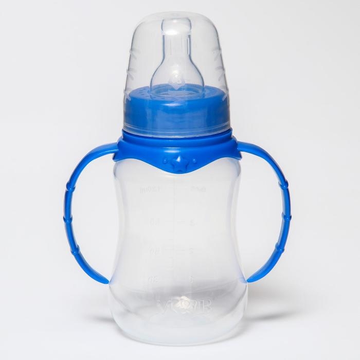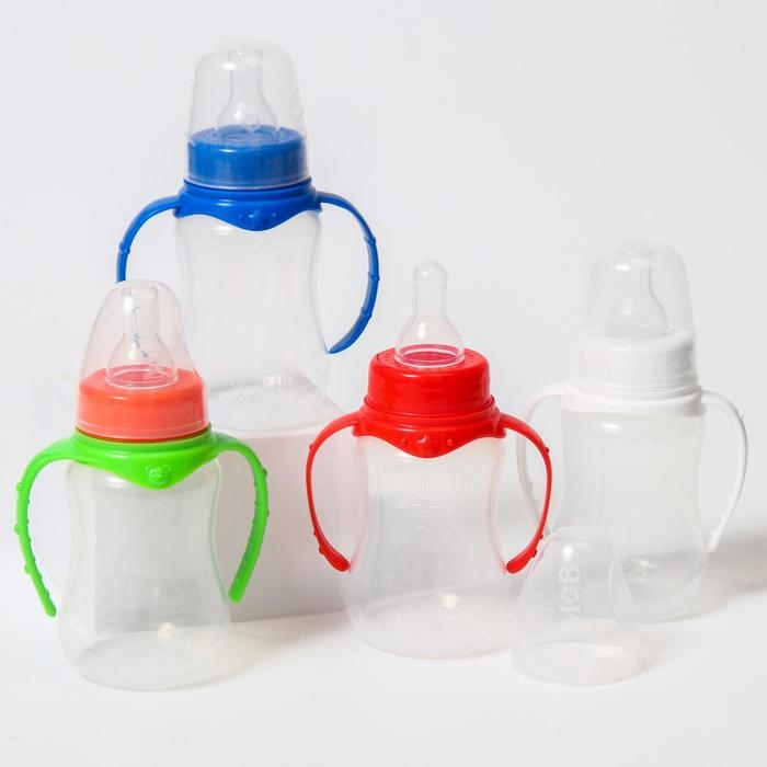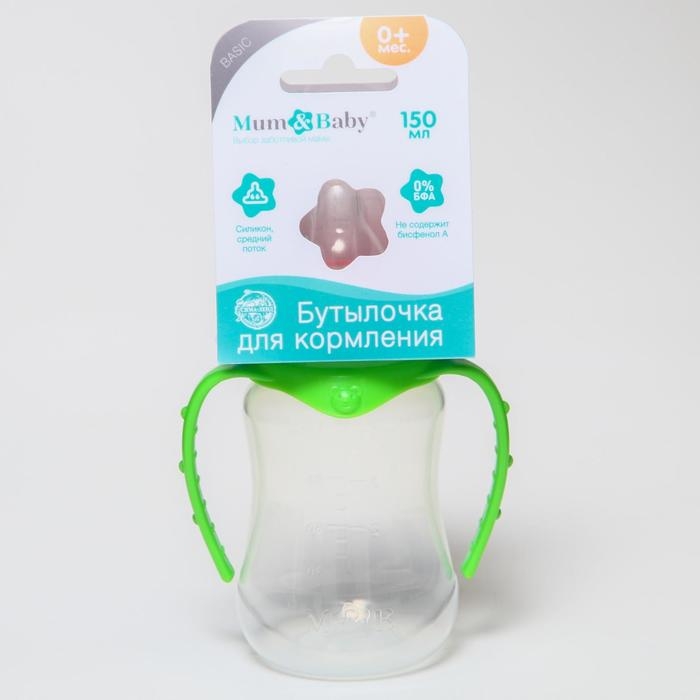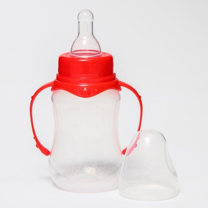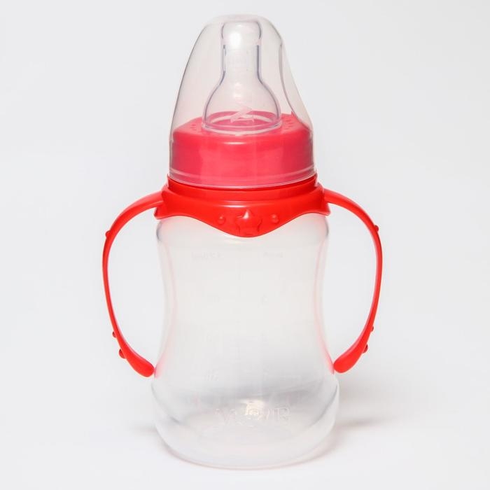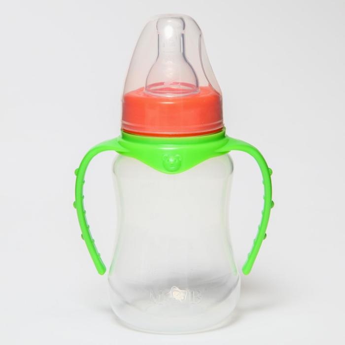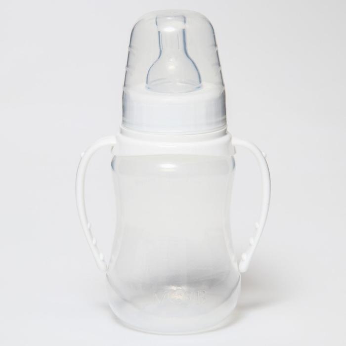 Бутылочка для кормления, классическое горло, 150 мл., от 0 мес., приталенная, с ручками, цвет МИКС