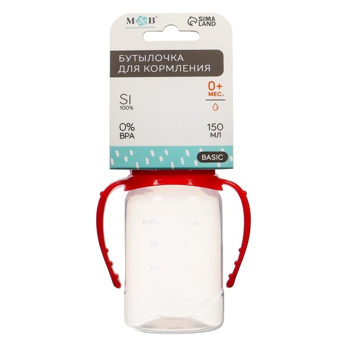 Бутылочка для кормления, классическое горло, 150 мл., от 0 мес., цилиндр, с ручками, цвет МИКС