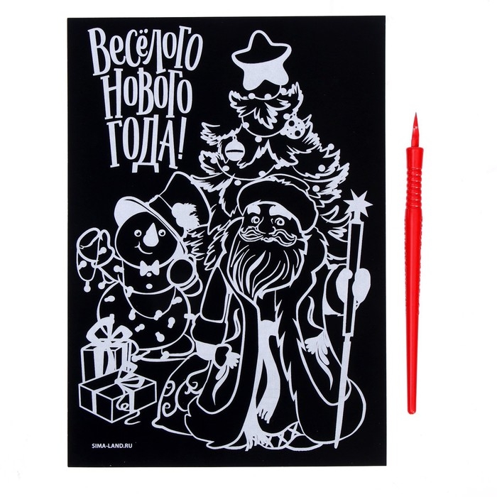 Гравюра на новый год «Весёлый Новый год!» с цветной основой