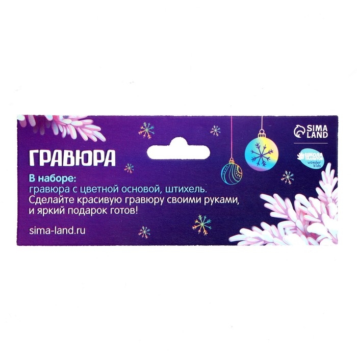 Чтобы создать новогоднюю картинку, достаточно процарапать намеченные контуры рисунка специальным инструментом — штихелем. Малыш с удовольствием будет счищать верхний слой гравюры, под которым находится цветная основа, ведь это так увлекательно!
